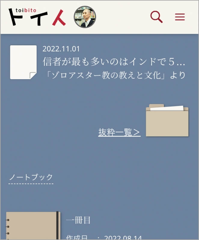 抜粋した文や文章は、あなただけが見ることのできる「書斎」に保管されます。抜粋にメモをつけて保存することにより、その時々の学びが記録された「ノートブック」が生成されていきます。