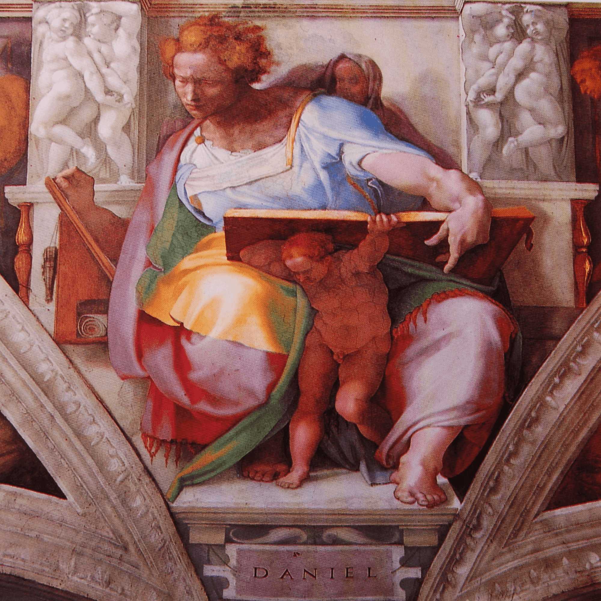 この装飾の中心的役割を担っているのは言うまでもなく『創世記』の連作ですが、ミケランジェロの彫刻作品との関係から考察するには、ひとりひとりが全身像で表されている預言者像から見ていくのがわかりやすいと思います。